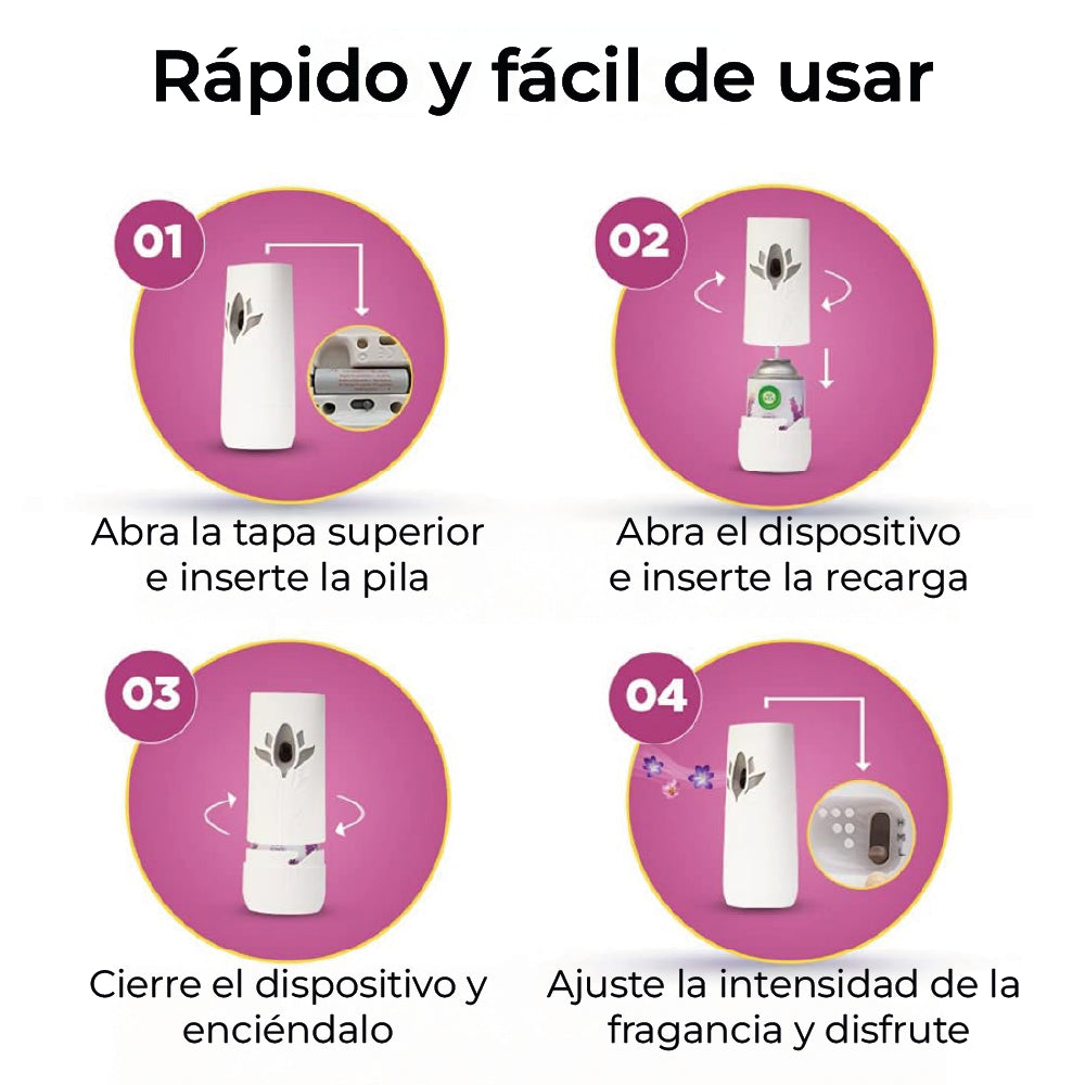 • 💨 Hasta 2.400 liberaciones de fragancia por cada refill