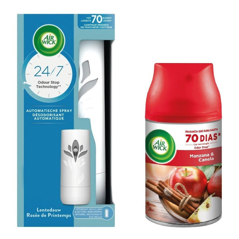 Disfruta de un ambiente agradable y fragante con el Difusor Automático Air Wick en aroma Manzana Canela. Este difusor libera de forma controlada y continua una mezcla equilibrada entre la frescura de la manzana y el toque cálido de la canela, creando una atmósfera acogedora en cualquier espacio. Su diseño inteligente brinda una perfumación constante sin necesidad de ajustes frecuentes, ideal para hogares y oficinas que buscan una fragancia sutil y duradera.