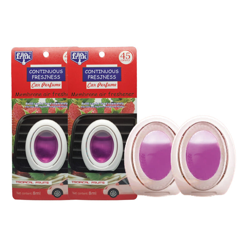 Este set incluye dos aromatizantes diseñados para colocarse fácilmente en las salidas de aire izquierda y derecha de tu vehículo. Proporcionan una fragancia fresca y agradable que ayuda a mantener un ambiente limpio y confortable mientras conduces. Su diseño compacto no interfiere con el flujo de aire ni la visibilidad, asegurando una experiencia de manejo más placentera. Ideal para quienes buscan renovar constantemente el aroma dentro del auto de manera práctica y eficiente.