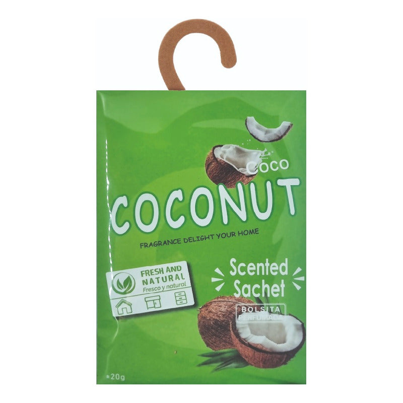 Descubra la frescura duradera del aroma coco con este sobre perfumado de 20g, ideal para armarios, cajones y autos. Su fórmula concentrada libera una fragancia intensa que mantiene sus espacios agradables y libres de olores no deseados, proporcionando una sensación de limpieza y confort constante. Su tamaño compacto permite colocarlo discretamente en cualquier lugar, transformando ambientes cotidianos en espacios con un toque exótico y refrescante. Perfecto para quienes buscan una solución práctica y eficaz para ambientar pequeñas áreas.