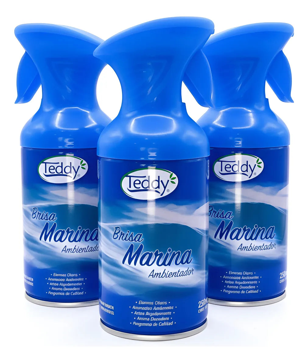 Este paquete de tres ambientadores en gatillo Teddy con aroma Brisas Marina ofrece una manera práctica y eficiente de refrescar cualquier espacio. Su fragancia equilibrada evoca la sensación de una brisa marina, aportando limpieza y frescura duradera. Ideal para hogares y oficinas, su diseño en gatillo permite una aplicación rápida y controlada, manteniendo el ambiente agradable sin esfuerzo.